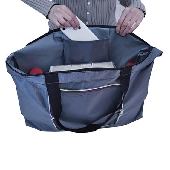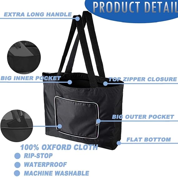 Taitettavat XLarge-ostoskassit taskuilla eivät ole vain käytännöllisiä, vaan myös erittäin monipuolisia. Niiden vedenpitävät ja hiekkatiiviit ominaisuudet tekevät niistä soveltuvia erilaisiin aktiviteetteihin, mikä varmistaa, että voit kantaa välttämättömät tavarasi huoletta. Huomaavainen muotoilu sisältää turvallisen yläosan vetoketjun ja kaksi taskua - yksi pieni sisätasku arvoesineille, kuten iPhonelle, pankkikorteille ja käteiselle, ja suurempi ulkotasku, josta pääset helposti käsiksi matkatavaroihin ja meikkeihin.