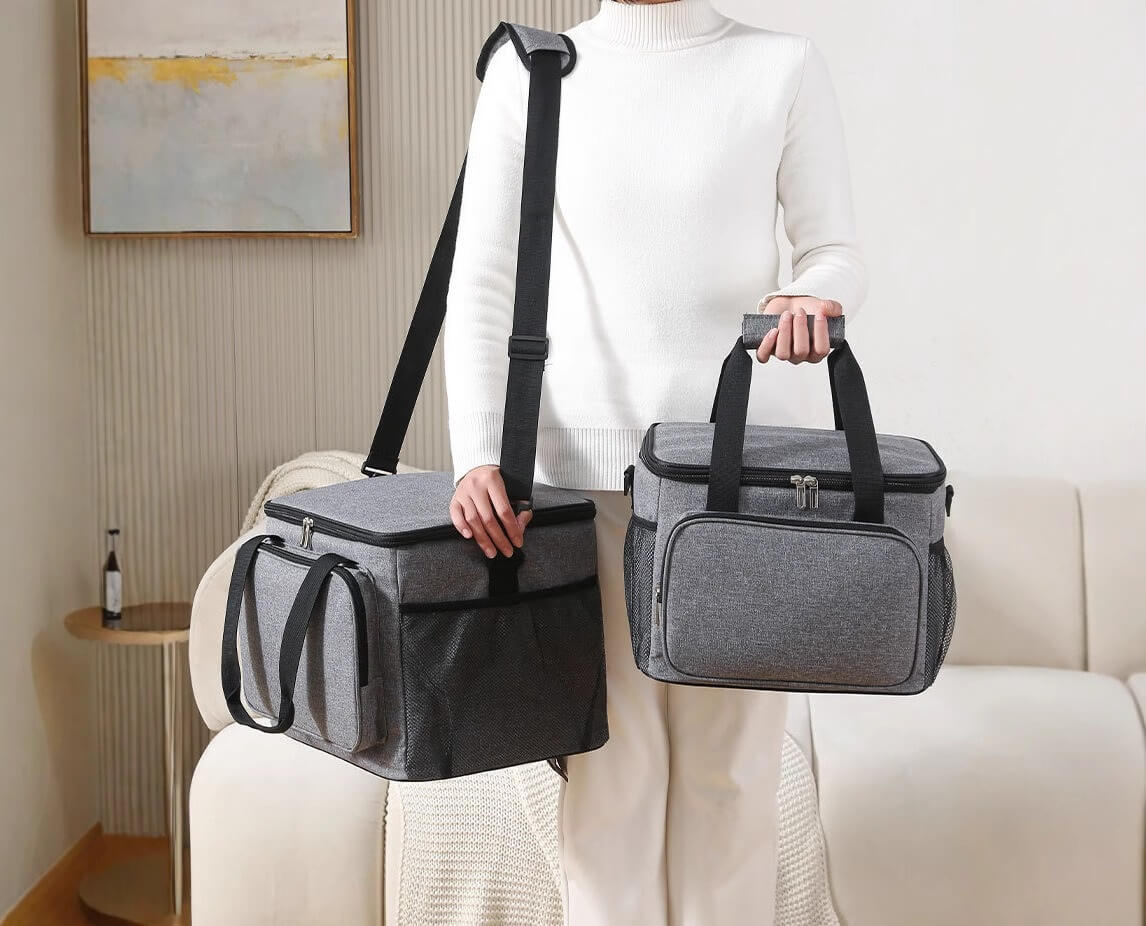 · Monipuoliset kantovaihtoehdot: Tämä pehmeä kylmälaukku on varustettu molemmilla kahvoilla ja olkahihnalla, ja se tarjoaa useita kantotapoja helpottamaan kuljetusta, olipa kyseessä sitten töissä, koulussa tai ulkona.