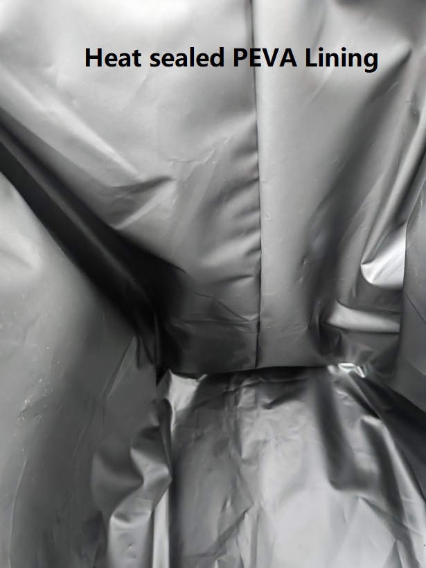 Joten siksi parempi lähestymistapa on lämmön tiivistys. Lämmön suljetut Peva-vuori-sidoskerrokset vuorausmateriaalista yhdessä ilman reikiä.