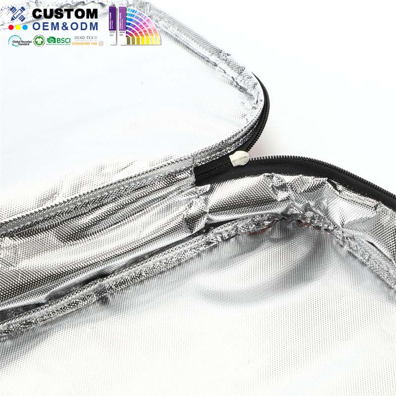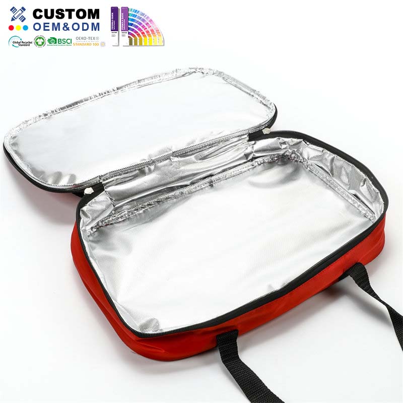 Eristetyssä PP-kuitukangasmateriaalissa valmistetun eristetyn vuokatelineen 2 mm paksuinen eristekerros ja elintarvikelaatuinen PEVA-vuori. Tämä yhdistelmä säilyttää tehokkaasti ruoan lämpötilan pitäen sen kuumana tai kylmänä pitkiä aikoja. Olitpa tuomassa pataruokia, jälkiruokia tai juomia tapaamiseen, voit olla varma, että annoksesi saapuvat tuoreina ja valmiina tarjottavaksi.